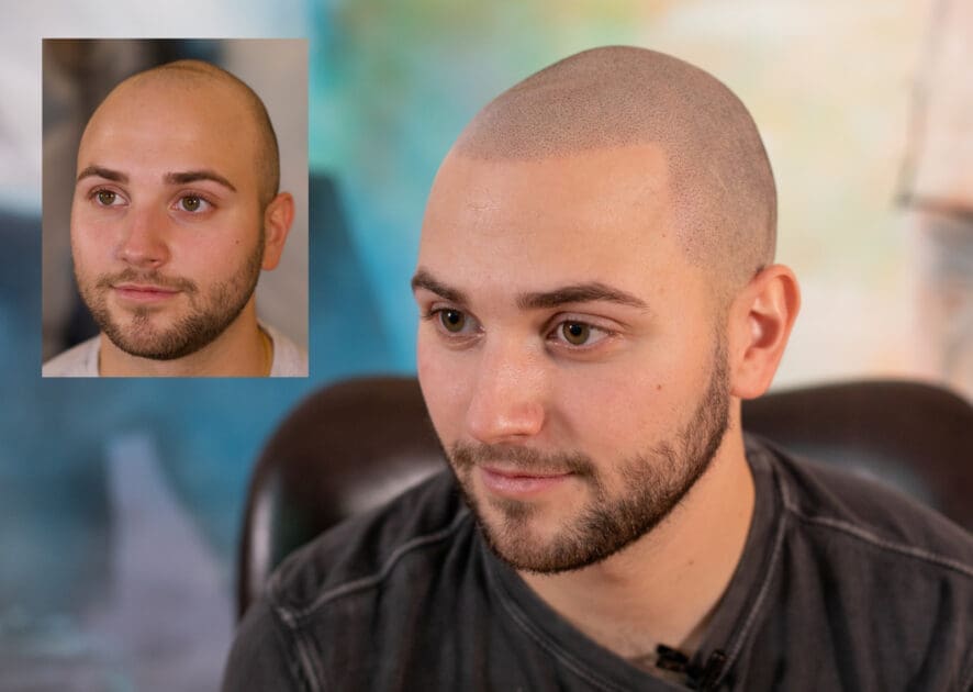Scalp micropigmentation, or SMP, involves depositing small amounts of pigment into the scalp’s top skin layers. Compared to invasive procedures like hair transplantation, it requires less downtime and is not a serious surgery. Scalp micropigmentation is also 100% effective vs hair transplants which may only work if you have a strong donor area. At the end of scalp micro pigmentation treatment, you will have the look of a short buzz-cut hairstyle. This hairstyle is timeless, stylish, and looks fresh on any man who is balding.